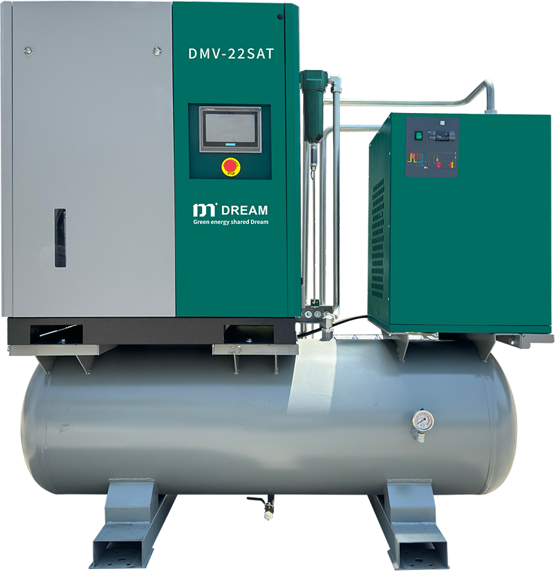 The Dream integrated screw air compressor adopts advanced energy-saving technologies such as variable frequency control and efficient compression mechanisms. These features help reduce energy consumption and operating costs while maintaining high performance.