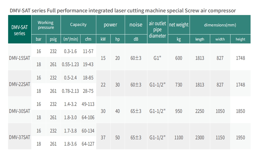 The capacity range of the Dream integrated screw air compressor varies depending on the specific model. It typically ranges from small capacities suitable for workshops and small industries to larger capacities for industrial applications. You can select the appropriate model based on your specific needs.